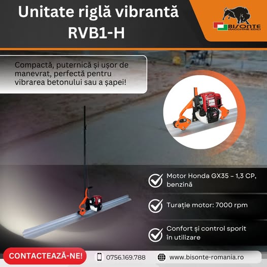 Unitate riglă vibrantă Bisonte RVB1-H – compactă, puternică și ușor de manevrat, perfectă pentru vibrarea betonului sau a șapei!